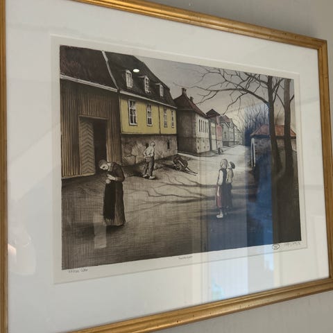Vebjørn Sand , innrammet litografi med tittel «I Skogen», nummerert 109 av 150. Signert.