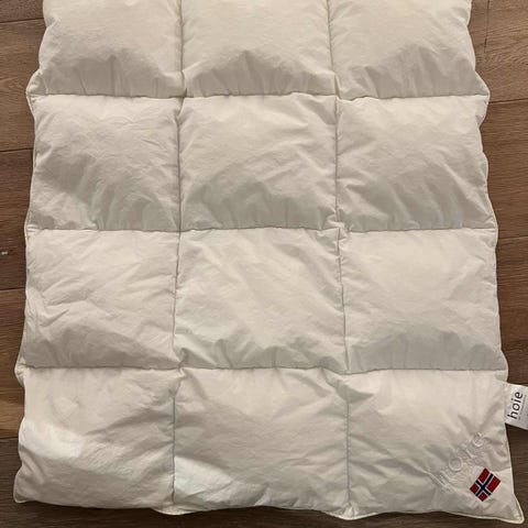 Fylt med 90% hvite europeiske moskusandedun/10% moskusandefjær, 25 g. Trekk i 100% økologisk bomull.