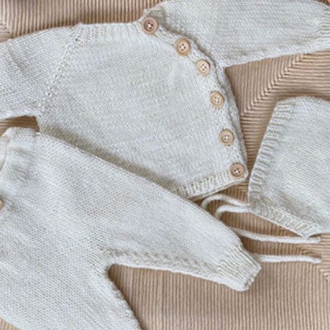 Ellens hentesett uten lue i dus rosa/lilla farge. Passer til nyfødt.