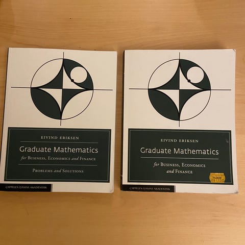 Eivind Eriksen Graduate Mathematics for Business, Economics and Finance lærebok i matematikk og statistikk. Dekker emner som er relevante for studenter innenfor økonomi og finans.