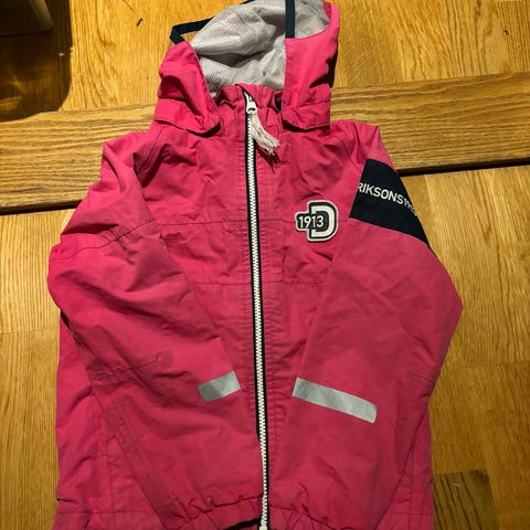 Brukt men i god stand. Hank til å henge opp jakken er slitt av på ene siden, kan sys.