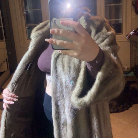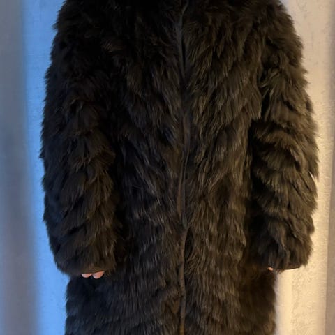 Vintage ekte minkpels krage i myk og tett pels i naturlig brun tone. Ca. 56 cm lang. Svært myk og behagelig kvalitet. Innsiden er trukket med sort stoff, og kragen har to metallhekter som holder den på plass rundt halsen. Klassisk vintage tilbehør i god stand, egnet både over kåpe og strikk.
