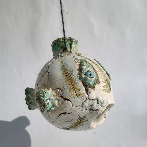 Vintage majolica glasert keramisk fisk fra Vallauris regionen i Frankrike. 1970 tallet.