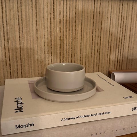 Kjøpt nytt i 2025, mye helt ubrukt servise fra Blomus i serien Pilar, farge moonbeam