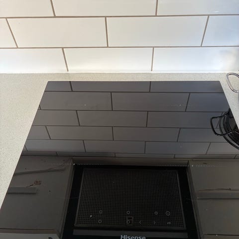 Siemens induksjonstopp med fire kokeplater. Overflaten er i svart glass, designet for enkel rengjøring og effektiv matlaging. Noen synlige skrapemerker.