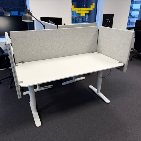 Flotte kontormøbler: Skap, skillevegger og pult i hev senk.