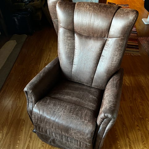 Derav prisen. Veldig gode å sitte i. Stoffet på sete/ryggpute kan vaskes.