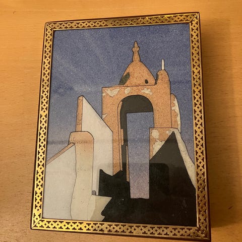 Vintage håndlaget skrin fra England. Med innfelt krystall stein. Veldig god byggekvalitet.