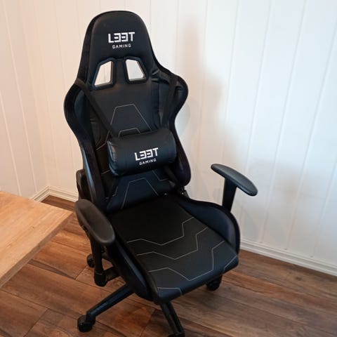 Gamingstol selges! Den er litt slitt på armlener men går ann å sy igjen. Litt knirk i setet, men ellers mye igjen til bruket:)