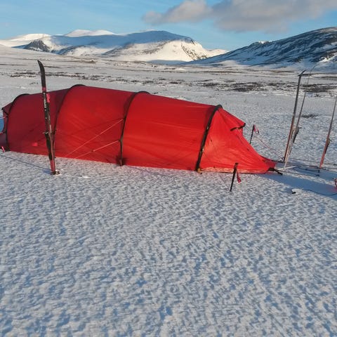 Godt og lunt isfisketelt til leie. En vedovn,teltseng og sovepose 2stik lamper.