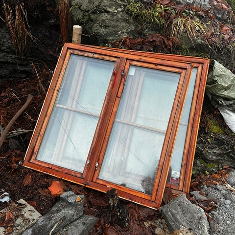 Trenger et strøk maling utvendig, men ser bra ut på innside.