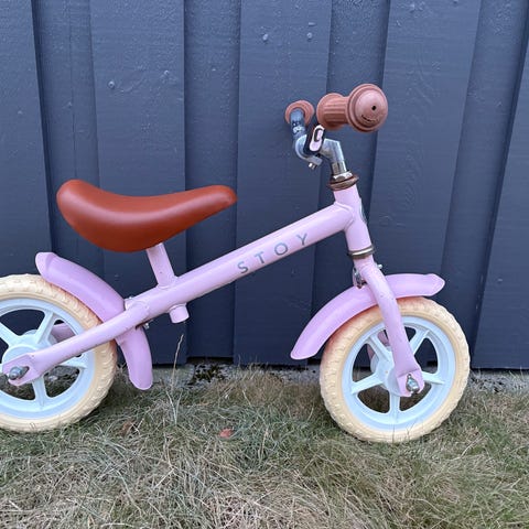 Stoy balansesykkel i gul farge brukt av ett barn. Kjøpt på babyshop.