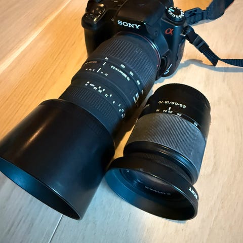 ubrukt Canon EOS 2000D speilreflekskamera med avtakbar objektiv, svart farge. Kameraet leveres med original eske, batterilader, kamerarem og to objektivdeksler. Egnet for fotografering med mulighet for utskiftbare objektiver.