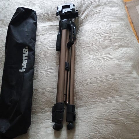 Selger et nesten ubrukt fotostativ av merket Hama med tilhørende oppbevaringsbag. Høyde kan reguleres. Kan hentes på Lørenskog etter avtale eller sendes mot frakt.