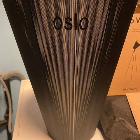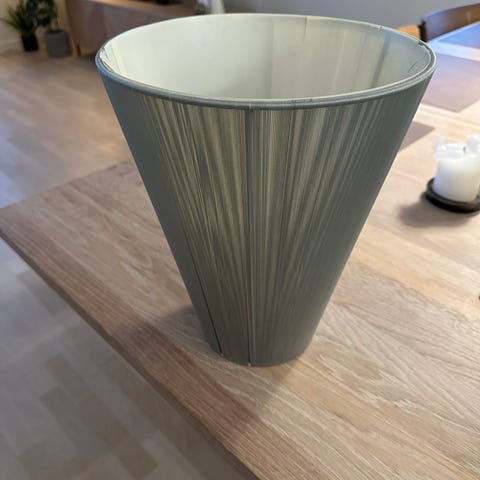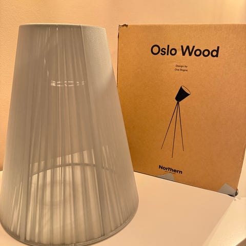 Lampeskjerm fra Oslo Wood. Lampeskjerm der plasten innerst er borte, er litt slitasje og selges derfor billig. Nypris 1600,-