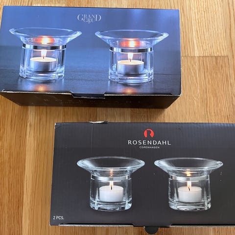 Rosendahl dekorasjonslysestaker laget av metall med en gullfarget finish. Settet inneholder to lysestaker med stjernemønster og hull som skaper dekorative lysmønstre. Egnet som dekorasjon i hjemmet. Kun brukt 1 jul.