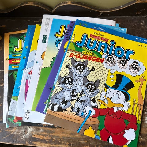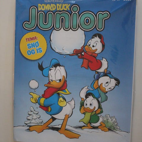 Selger her 26 stk. Donald Duck Junior fra 2025. Dette er komplett årgang. Alle i veldig bra stand, oppbevart i plastlommer eller ny og forseglet (se bilder). Kan selge enkeltvis for 25,- pr. stk. Alternativt 600,- for alle.