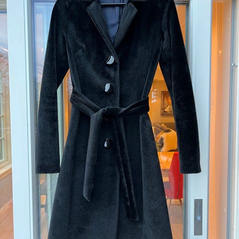 Helt ny kåpe i myk fuskepels kjøpt i fjor på KappAhl. Kåpen har en høy krage og er rett i modellen, og har skjulte knapper og sidelommer. Helt ny med lapper, 1500kr