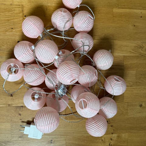 Helt ny og ubrukt lyslenke fra Kid Interiør selges for 95,- Er kun pakket ut av emballasje, fortsatt sammenbundet slik den var fra butikk. Ser at den har en liten sprekk ved skruen, men dette skal ikke ha noe å si på funksjon. Ellers uten anmerkninger. Kjøpt for noen år siden, aldri tatt i bruk. Perfekt som dekor på barnerom etc.