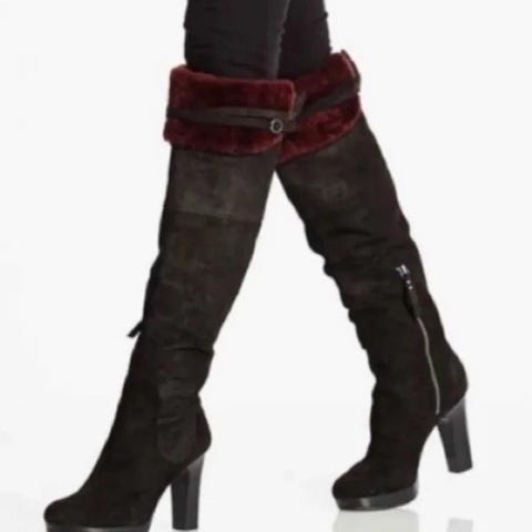 Miss Sixty støvler i størrelse 38, brun farge. Støvlene har høye hæler og dekorative snorer med duskdetaljer. Utsiden er av ekte skinn, og innsiden har et mykt, lyst fôr som kan brettes ned for en annen stil.