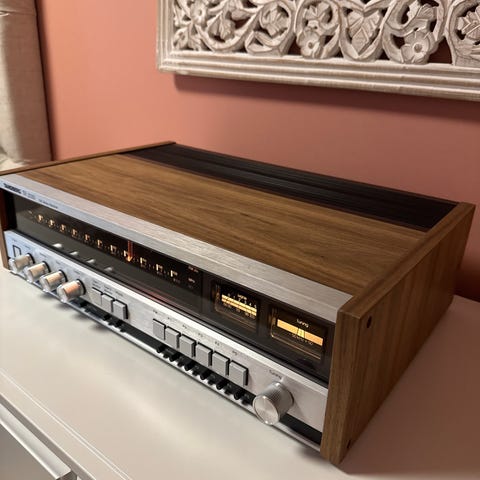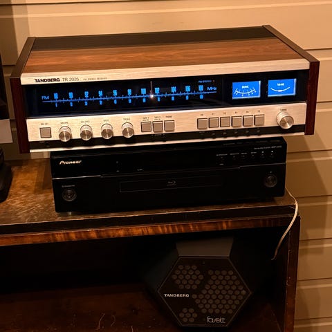 Tandberg TR 2075 i teak vurderes solgt. Så og si strøken uten skader og riper. Forrige eier opplyste at dette er førsteutgaven med gullfarget trafo. Brukt jevnlig av meg siste 3 år, både med radio, CD og platespiller. Alt fungerer som det skal, alle lyspærer virker. Sendes ikke.