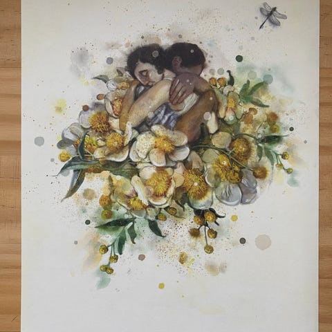 Hentet ut fra bok kunstneren har illustrert, derav tekst/dikt på baksiden av illustrasjonene, men det syns ikke på fremsiden.