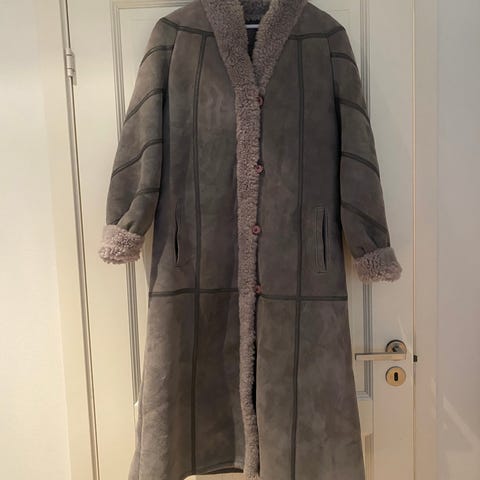 Nydelig, myk semsket skinnkåpe med svak A-fasong fra merket Kircilar. 3/4 lengde. Strl 40. Farge: antrasitt