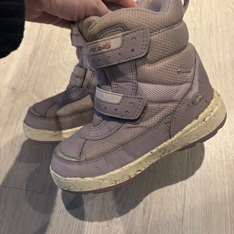 Viking vintersko i størrelse 29. Skoene er lilla og laget av slitesterkt materiale. De har borrelåslukking for enkel tilpasning og god passform. Sålen er robust med godt grep, egnet for utendørs bruk.
