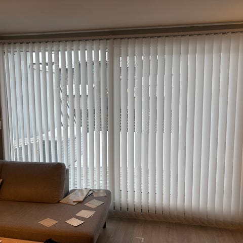 3 pakker lamellgardiner, aldri åpnet, har blitt liggende ubrukte. 60x300cm, a kr 300