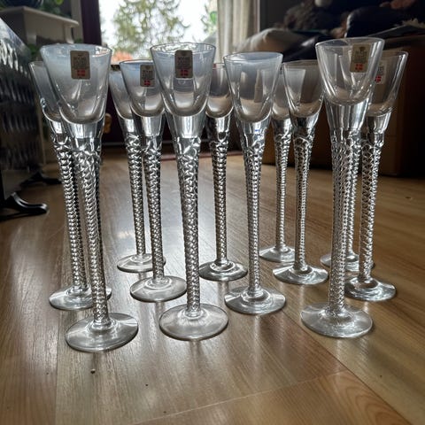 10 stk Holmegård aquavit glass i god stand. Har vært i mitt eie siden de var nye på 70-tallet.