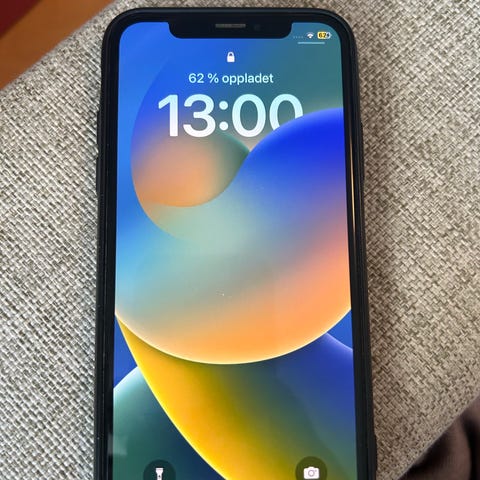 Apple iPhone X mobiltelefon med 64 GB lagringskapasitet. Enheten har en sølvfarget bakside og leveres med lader. Passer for bruk som smarttelefon med funksjoner for kommunikasjon, internett og apper.