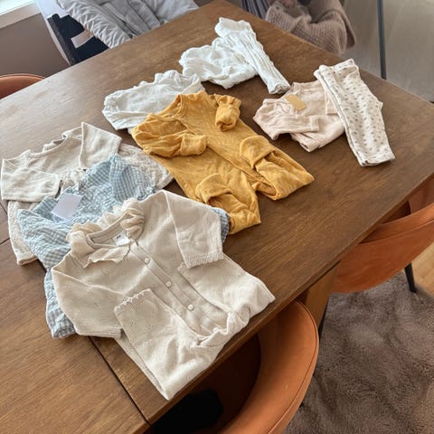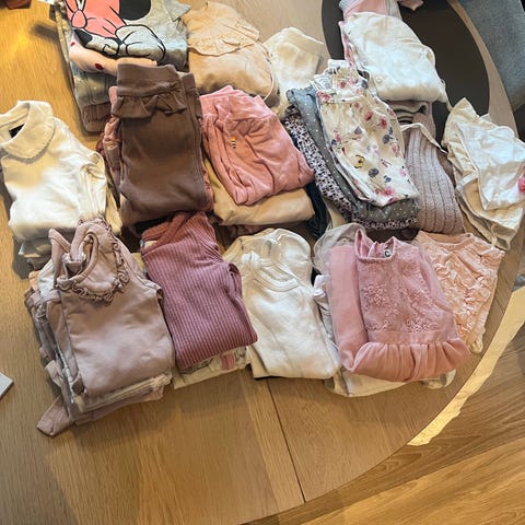 Selger en stor klespakke med veldig søte klær til jente i størrelse 62.