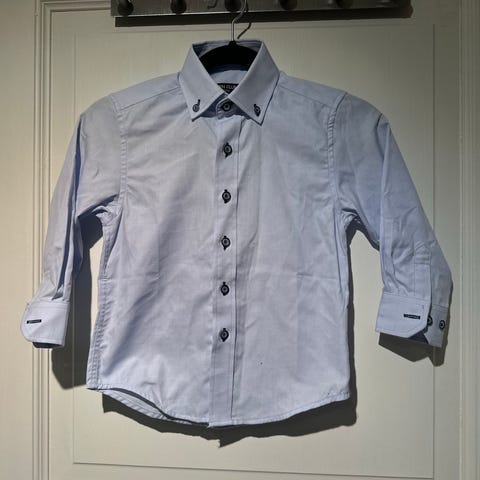 - Hvit skjorte fra KappAhl str 98, svak misfarging ved krage/nakke, ikke veldig synlig men denne kan fåes med om ønskelig.