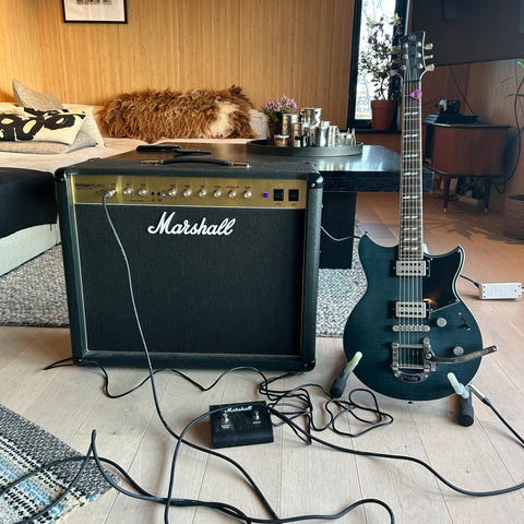 Bestykket med to EL34 og tre 12AX7-rør, leverer den ca. 50 watt med punch, rike overtoner og den karakteristiske Marshall-mellomtonen.