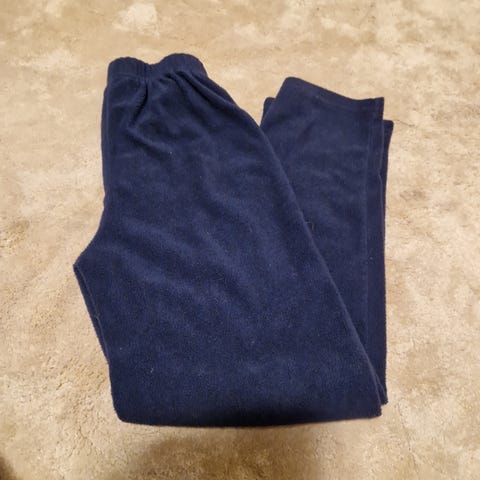 Pent brukt fleecebukse. Kongeblå. Joggebukseform med strikk i linning og nederst i bena