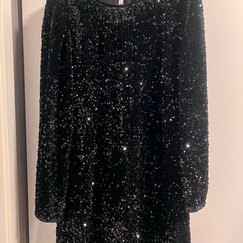 FESTKJOLE i størrelse M, fargen svart og laget av polyester. Kjolen er designet for kvinner og egner seg til formelle anledninger.