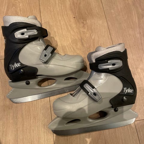 CCM Ishockeyskøyter for barn, størrelse 35. Skøytene er designet for ishockey og har svart, rød og hvit fargekombinasjon. Egnet for barn som spiller ishockey.