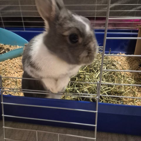 Har ei nydelig lita frøken som mistet venninna si forrige uke, og trenger å komme til et hjem med andre kaniner. Hun er utrolig tam, tillitsfull og fortjener kun det beste. 15 kg kvalitetsfôr, børster, matskåler, div innredning til bur og 80 meter med kompostgjerder kan kjøpes med om ønskelig.