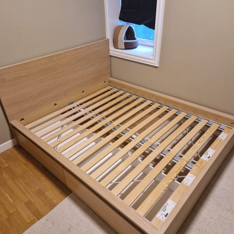 IKEA SLÄKT seng med 4 oppbevaringsskuffer selges med madrass.