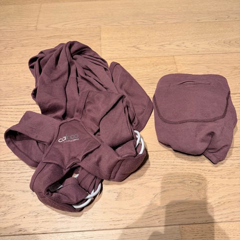 Kjempedeilig og lettvindt bæresjal fra caboo. Dette er ferdig knyttet og baby sitter perfekt i. Veldig pent brukt. Ingen annmerkninger eller flekker.