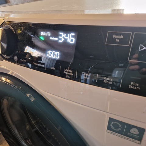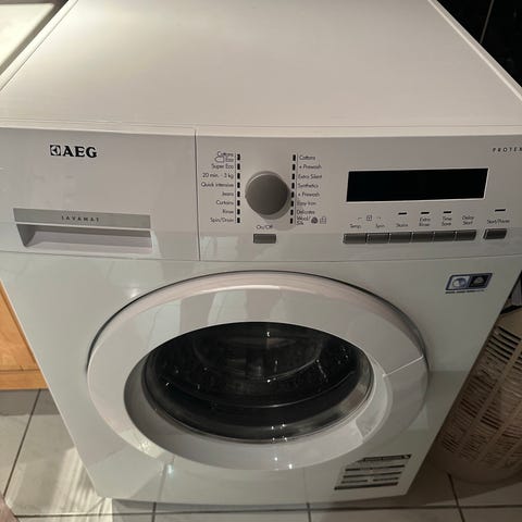 AEG 6000 Series ProSense frontmatet vaskemaskin med en kapasitet på 8 kg. Modellen har flere vaskeprogrammer inkludert Eco 40-60, bomull, syntetiske stoffer, delikate tekstiler, ull, 20 minutters hurtigprogram, dyneprogram, utendørsprogram, maskinrens og hygieneprogram. Maskinen har funksjoner som temperaturvalg, sentrifugeinnstilling, ekstra skylling, Easy Iron og start/pause-knapp.
