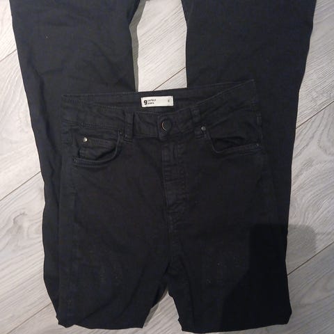 Jeans fra Gina Tricot x Nicki Studios i størrelse 38. Mørk grå farge med slitt look 😊