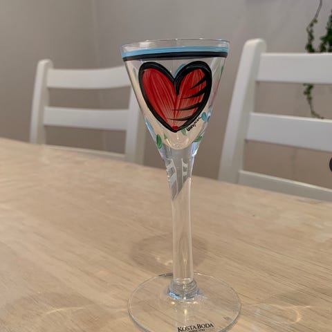 Pent brukt. De rosa glassene har fortsatt begge lappene. Høyde varierer fra ca 9,9cm til 11,2cm.