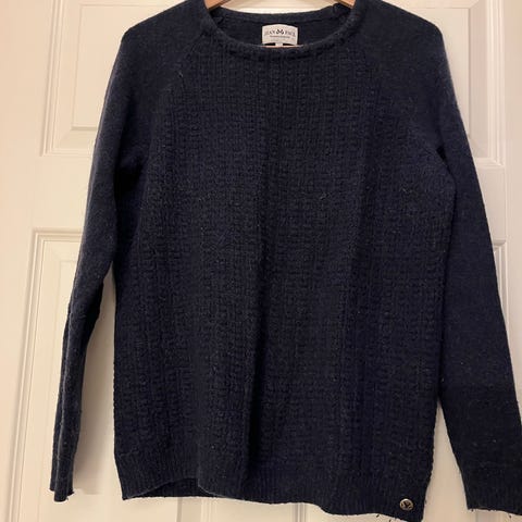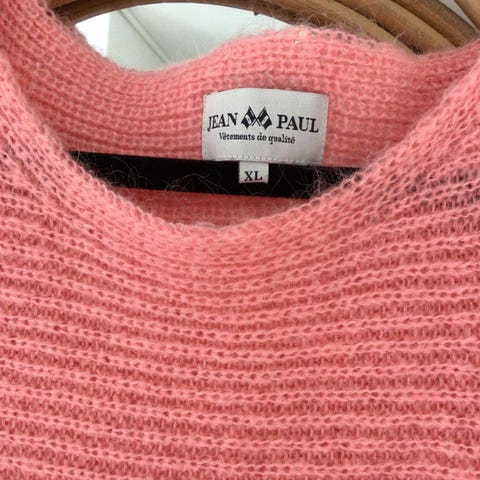 Jean Paul Genser i størrelse L for kvinner, laget av ull. Genseren har en beige farge og en enkel, klassisk design.