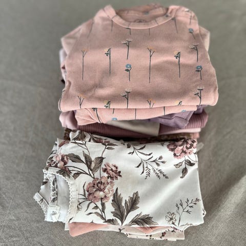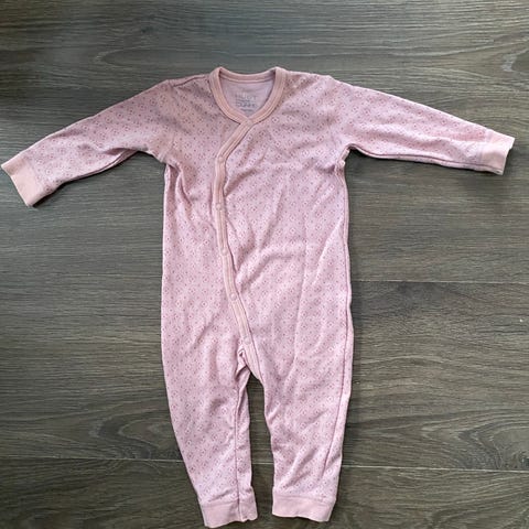 Hust & Claire ull/bambusviskose pysjamas i blå farge med biler, størrelse 74. Slitt på knærne, men ikke hull.