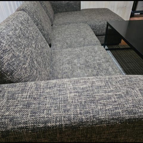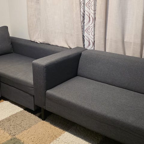 Mørkegrå sovesofa med en komfortabel enkeltsofa å sitte på; ingen skader.