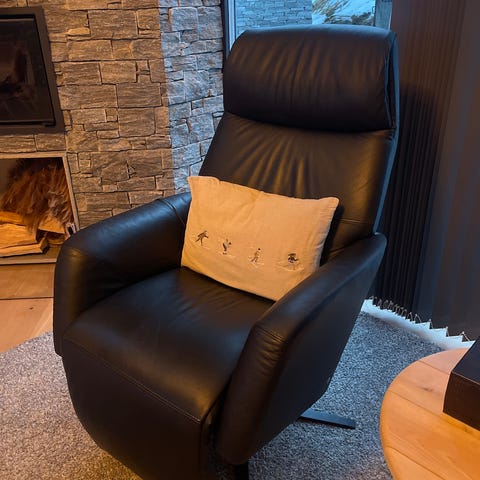 Med regulerbar nakkestøtte. Hud Paloma Black med Star understell i matt sort. Inkludert krakk.
