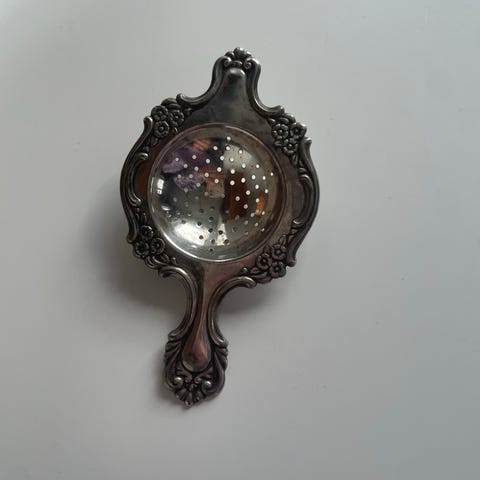 En vakket 60 gr nysølv tesil med fat i orginal forpakkning selges 250,-