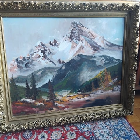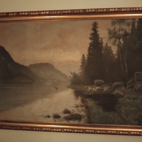Maleri av slott i landskap