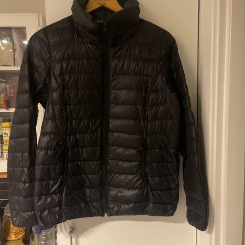 Jakken er i en mer burunder farge, den har hatt et lite hull bak på det ene ermet som er dekket med et merke, derfor billig.
